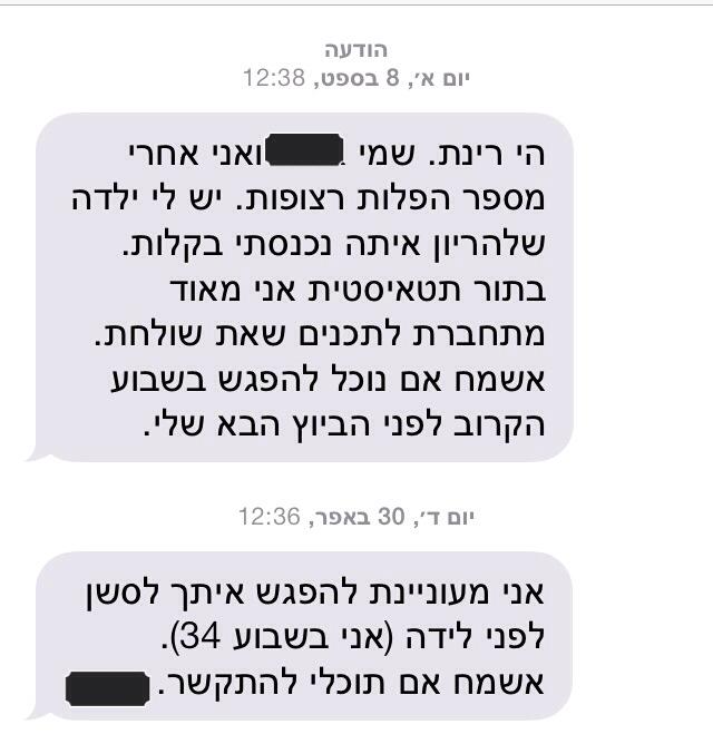 הסמס הבא כבר היה בקשה לטיפול הכנה לקראת לידה..
